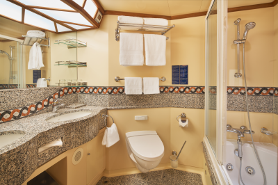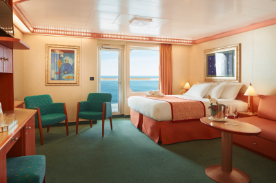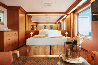 Step into an oasis on the waves with our Suite, designed to provide you with an exclusive experience full of details and special attentions. With one double or two twin beds depending on your preference, this suite offers you a luxurious retreat on the high seas. Enjoy a range of carefully selected amenities, such as individually controlled air conditioning, hairdryer, safe and much more. Immerse yourself in luxury and comfort as you enjoy and relax after a day full of adventures. It has an area of approximately 34 square meters. Capacity up to 4 passengers.